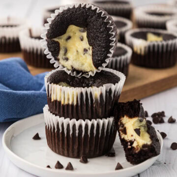 - Don’t Overfill the Liners: Stick to filling the liner only ⅓ full for the chocolate batter. If you go over, the cheesecake layer won’t sit nicely on top.