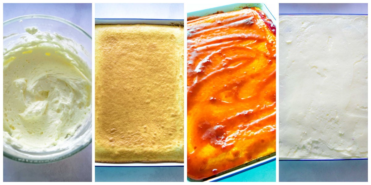 It starts with a cake mix and then you add in simple pantry items to get a nice sponge-like cake. I use this doctored-up cake mix recipe when I bake a white cake. I often also add sour cream but wanted a more sponge-like texture for this cake so I left it out.