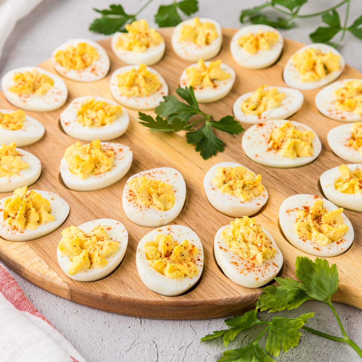 Deviled eggs are definitely make-ahead friendly, with just a little planning. I don’t recommend filling them too early, though. The egg whites can get a little weepy and lose that nice firm texture if they sit too long with the filling.
