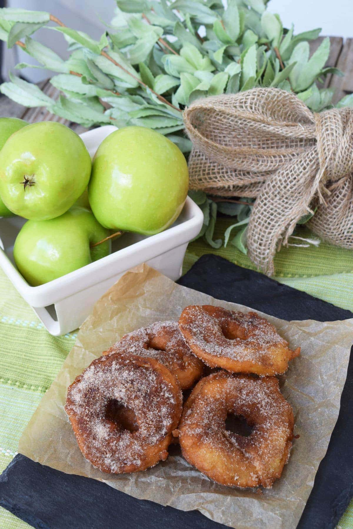 Fried Green Apples are a simple and tasty treat. Apple slices dipped in batter, deep fried, and sprinkled with cinnamon sugar. Think Fried Green Tomatoes, but a sweet version.