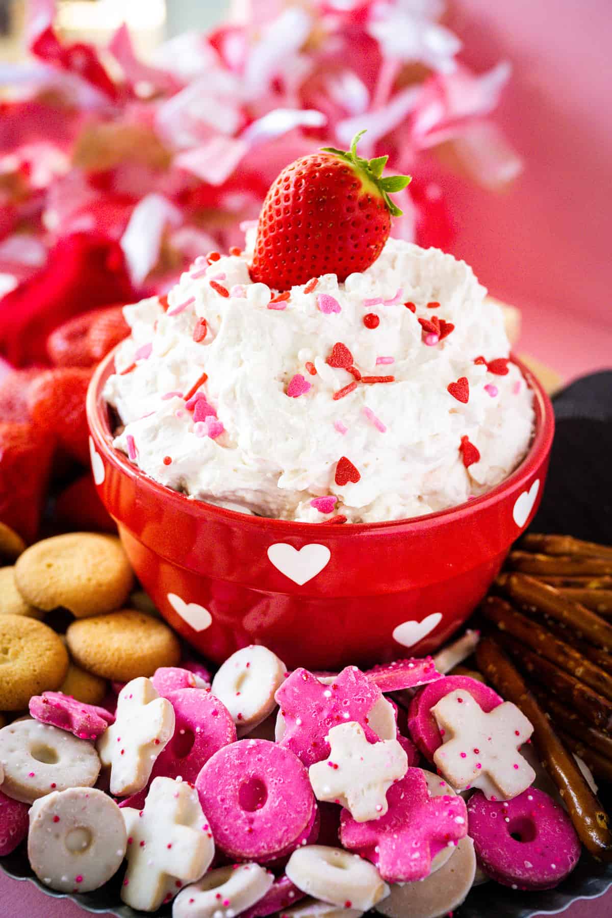 This is the perfect dip for my daughter’s Valentine’s Day party! So creamy and fun to make – my whole family will enjoy it!