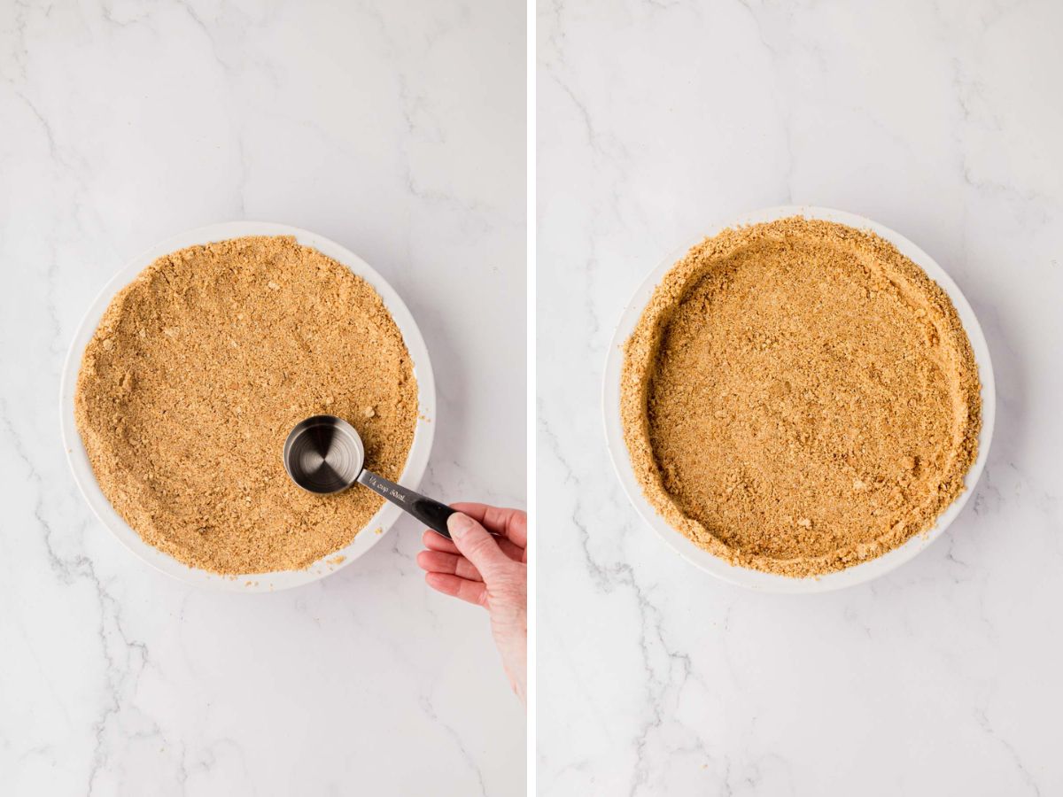 The big decision – do you want a no-bake graham cracker crust or a baked graham cracker crust. Both are delicious, and each has its own time and place.