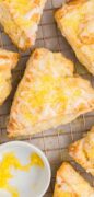 - Remove the baking sheet from the oven and transfer the scones to a wire rack to cool for about 5 minutes.