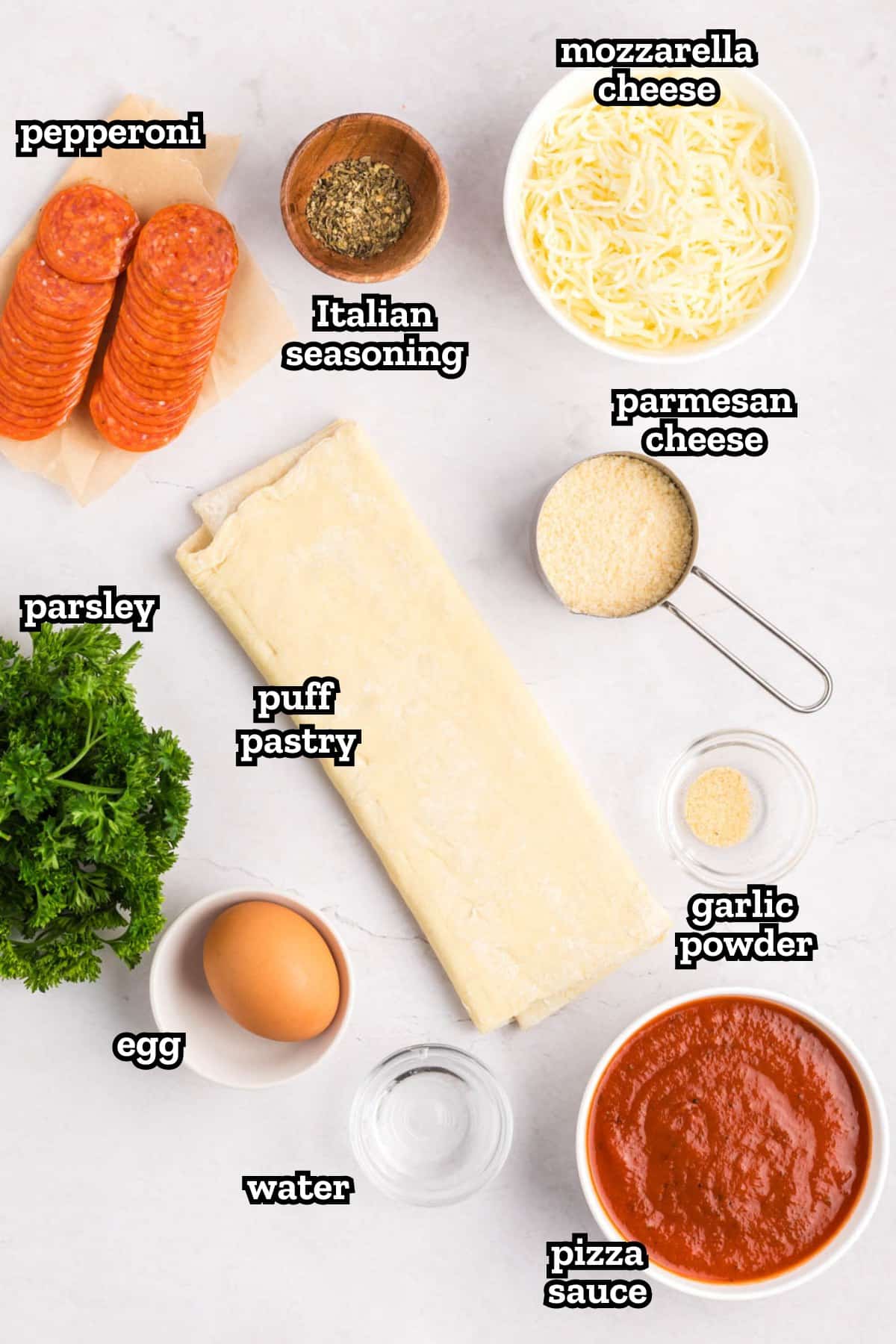 - Cover the puff pastry with 1/4 cup of marinara sauce or pizza sauce. Leave 1/2 inch on all sides.